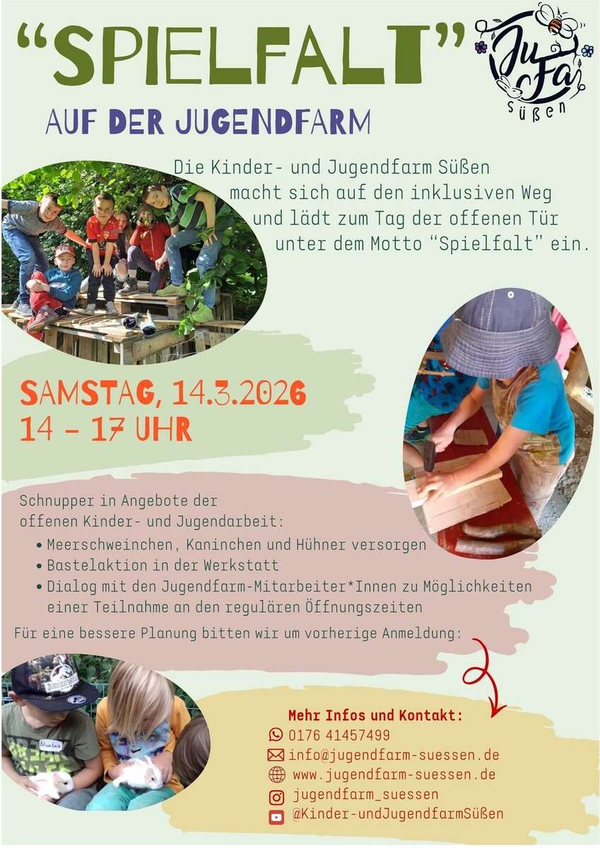 Nun gehen wir den nächsten Schritt: Bei unseren Tagen der offenen Tür im Frühjahr (9.5.) und Herbst (10.10.) sind alle Familien herzlich willkommen. Nun wird es darüber hinaus einen Tag der offenen Tür für Familien mit Kindern mit Behinderung geben. Am Samstag, 14.03. von 14 bis 17 Uhr bieten wir bei uns auf der Jugendfarm auf dem Baierhof Basteln, Tiere streicheln und leckere Waffeln an. MitarbeiterInnen der Jugendfarm stehen für die Familien zum Gespräch bereit, um gemeinsam zu schauen, ob es Barrieren gibt, die den Zugang zu unseren regulären Öffnungszeiten erschweren. Wir bitten um Anmeldung unter info@jugendfarm-suessen.de, um besser kalkulieren zu können. Wir freuen uns auf euch!