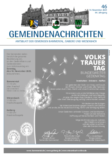 Gemeindenachrichten Amtsblatt der Gemeinden Bammental, Wiesenbach und Gaiberg
