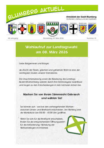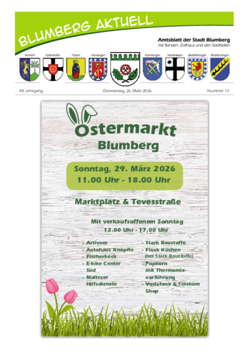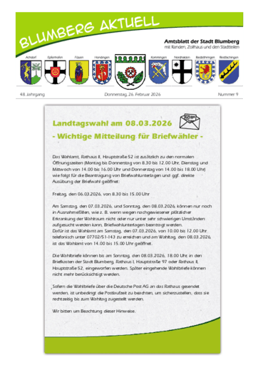 Blumberg Aktuell – Amtsblatt der Stadt Blumberg mit Randen und den Stadtteilen