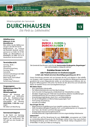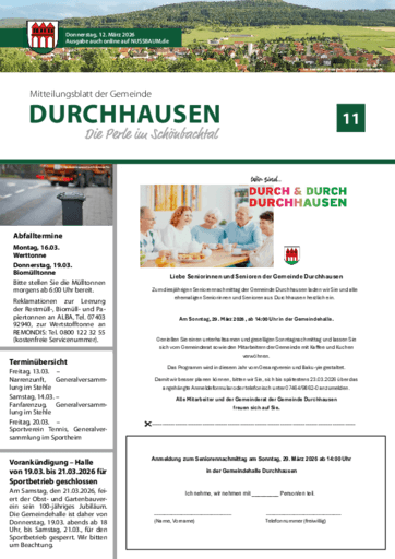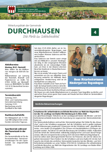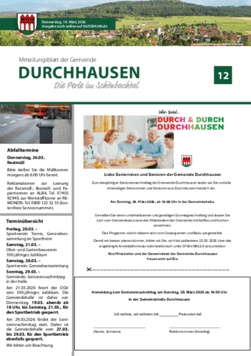Mitteilungsblatt der Gemeinde Durchhausen