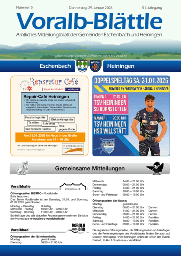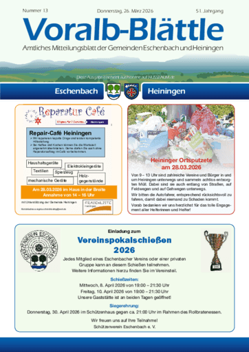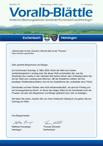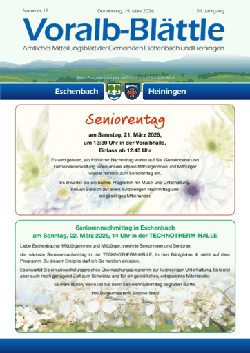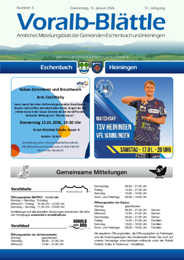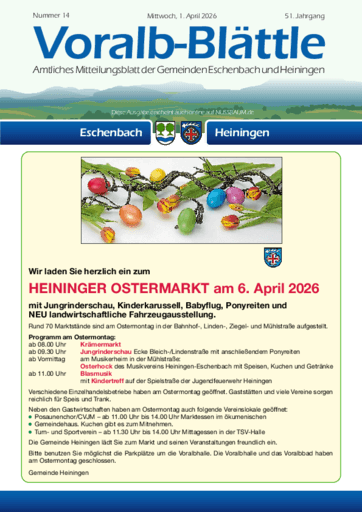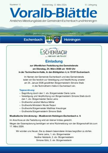 Voralb-Blättle – Amtliches Mitteilungsblatt der Gemeinden Eschenbach und Heiningen