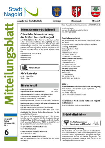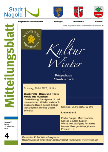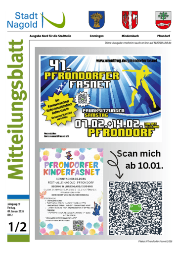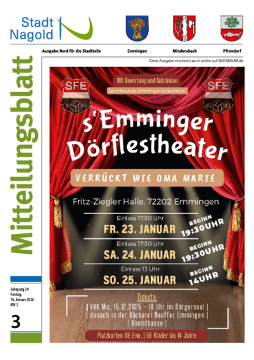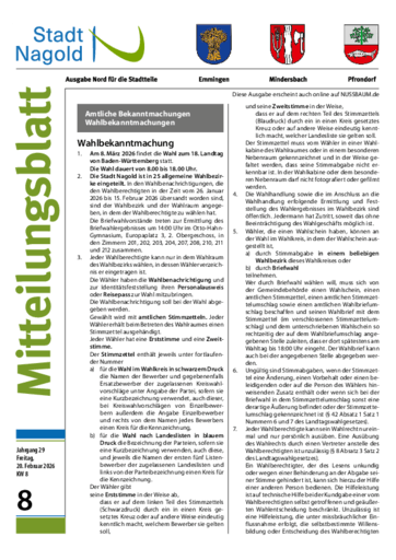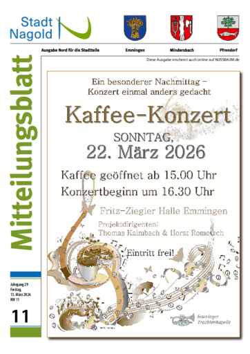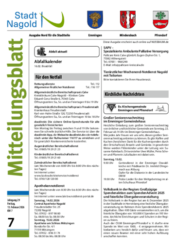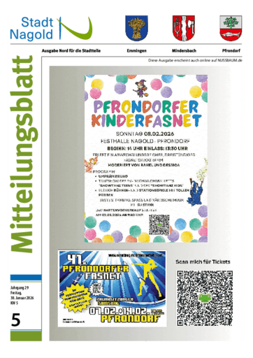 Stadt Nagold – Ausgaben für die Stadtteile: Emmingen, Mindersbach, Pfrondorf